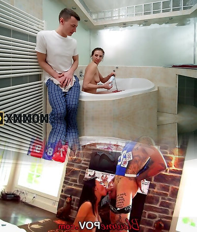 Stepmom is in the bath, which means sperm will shortly be on her face.