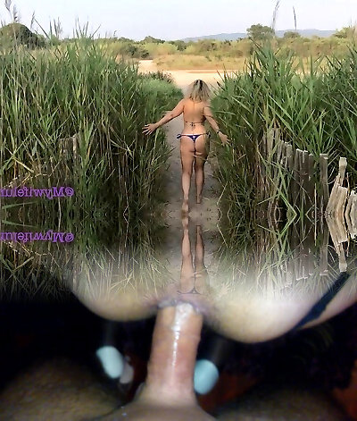 Extraordinary anal orgy with mature wife on the beach in broad daylight