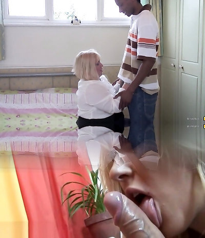 Ebony MILF caught stepson stroking and jumped on his white man-meat