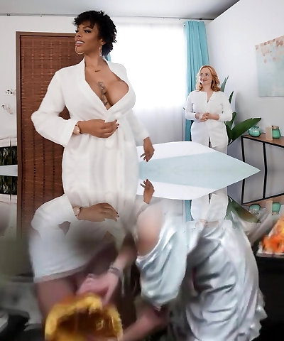Aroused Milf Brandi Love seduces Kenna James to fuck her in massage session