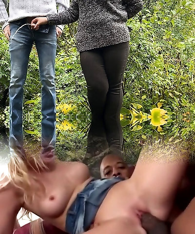 Hot plumpy slut with a fat ass tries to treat extremely big black dick in her gullet and vag