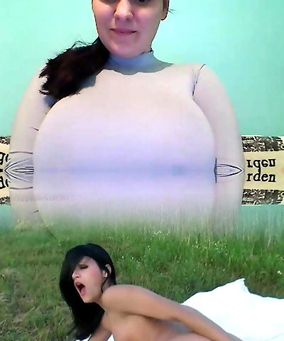 Busty bizarre babe fucks a gigantic fuck stick outdoors