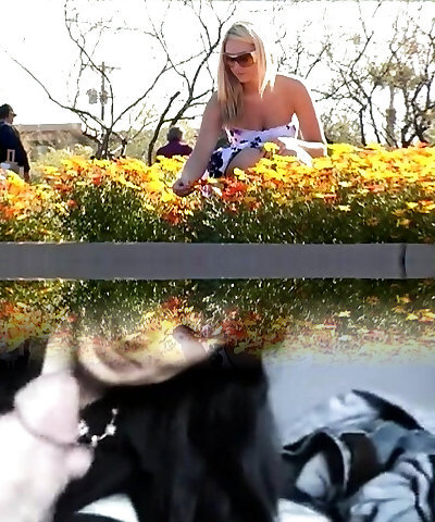 Cougar amateur lady in public displaying and blowing
