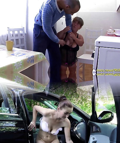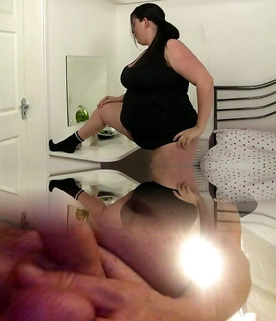 Chubby Goldie Jackson bounces on a black trunk with her fat ass