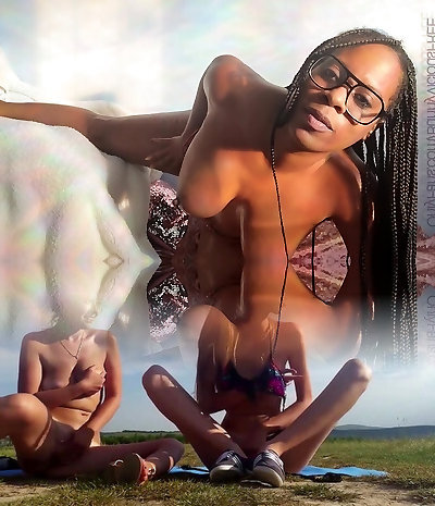 Ebony teenie Sarah Banks eventually gets to ride a cock outdoors