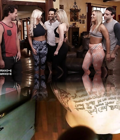 Spicy blonde bombshells pulverize their stepsons' BWCs in arousing orgy