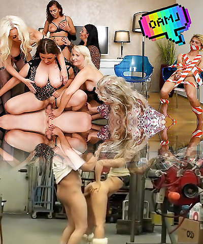 1 flower fellow & 5 horny cougars in a kinky group sex