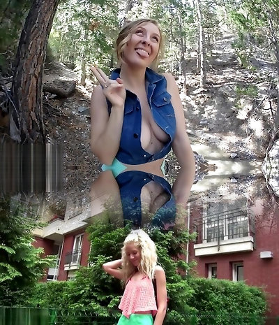 Sexy bosomy jogger Blondie Fesser rides stranger's wood outdoors