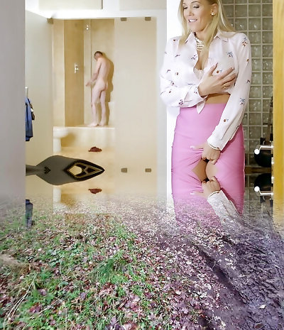 Stepmom is in the bath, which means sperm will shortly be on her face.
