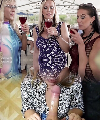 Two slutty MILFs have fun with the Bbc while their bikinis barely cover their nipples