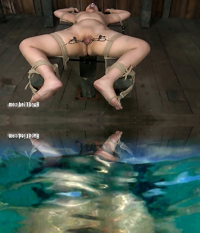 Tantalizing nerdy chick with chubby forms in the bondage action