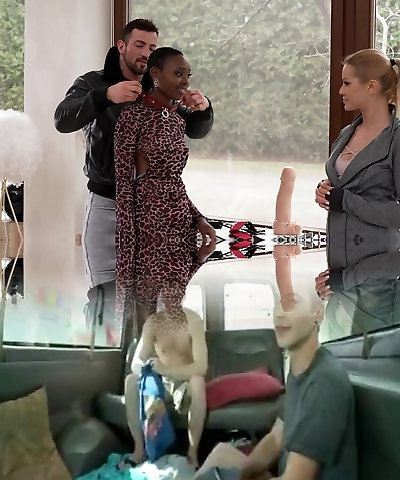 2 Black couples have a crazy foursome sex on a sofa