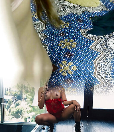 Svelte long-legged girl Jana D lies onto her body side to be plumbed on the floor