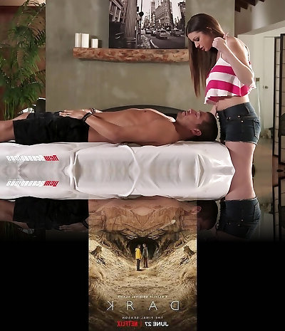 MILF Masseuse with huge bumpers lubes up Seth Gamble and blows his dick