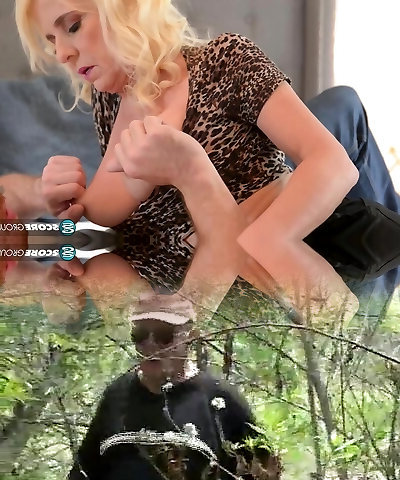 Big-chested blonde granny with her pussy pierced, Cammille Austin likes to take a huge sausage in the bum