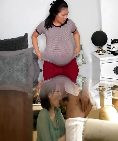 Pregnant asian wife desired a threesome with her midwife