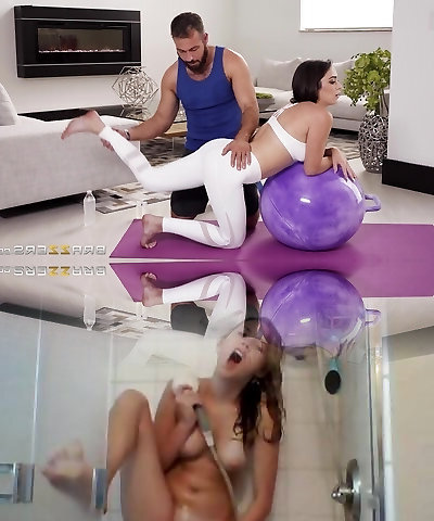 Yoga exercising turns to super-hot long-lasted banging in a shower