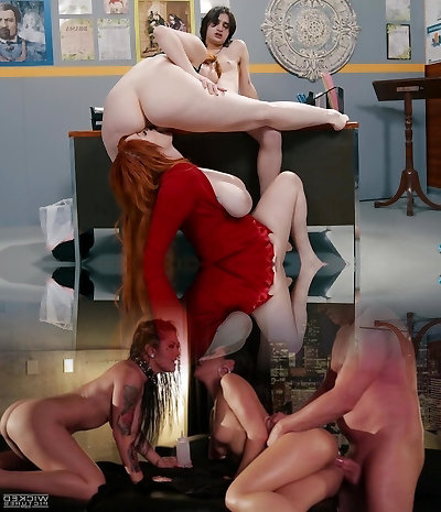 Two teachers and a student in an intense three way scene